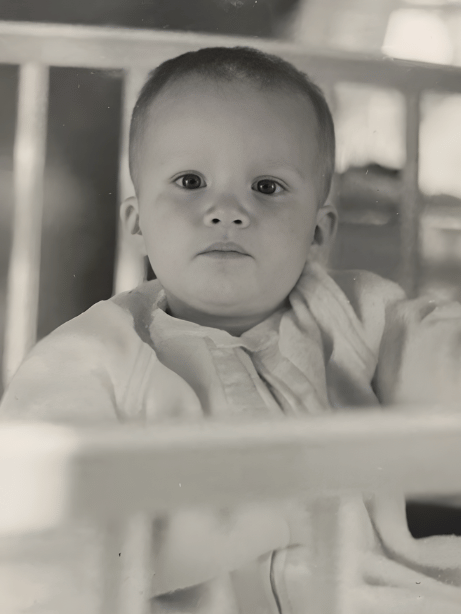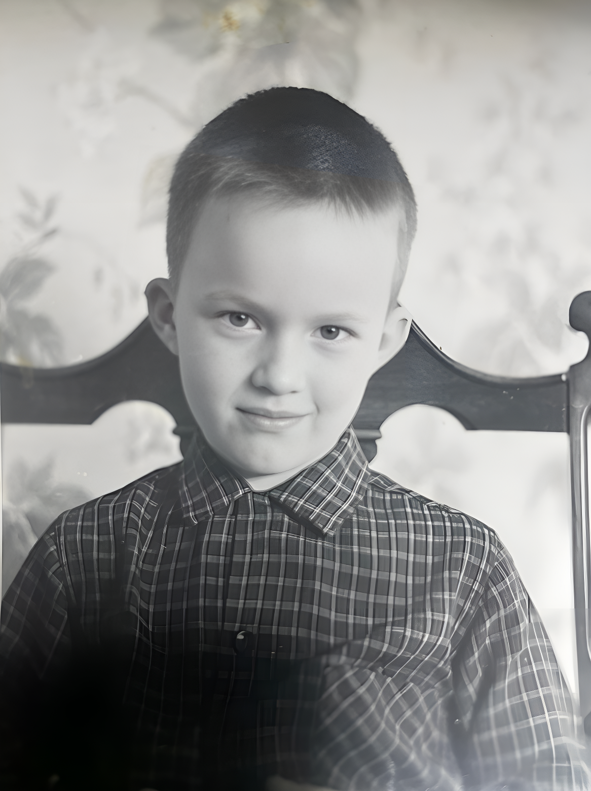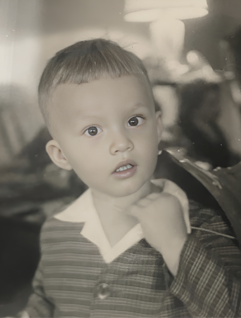 As a child, Tom committed petty crimes frequently. In this snapshot, he’d just been caught red-handed with his sticky little mitts in the proverbial cookie jar (reaching for cash in Mom’s purse).