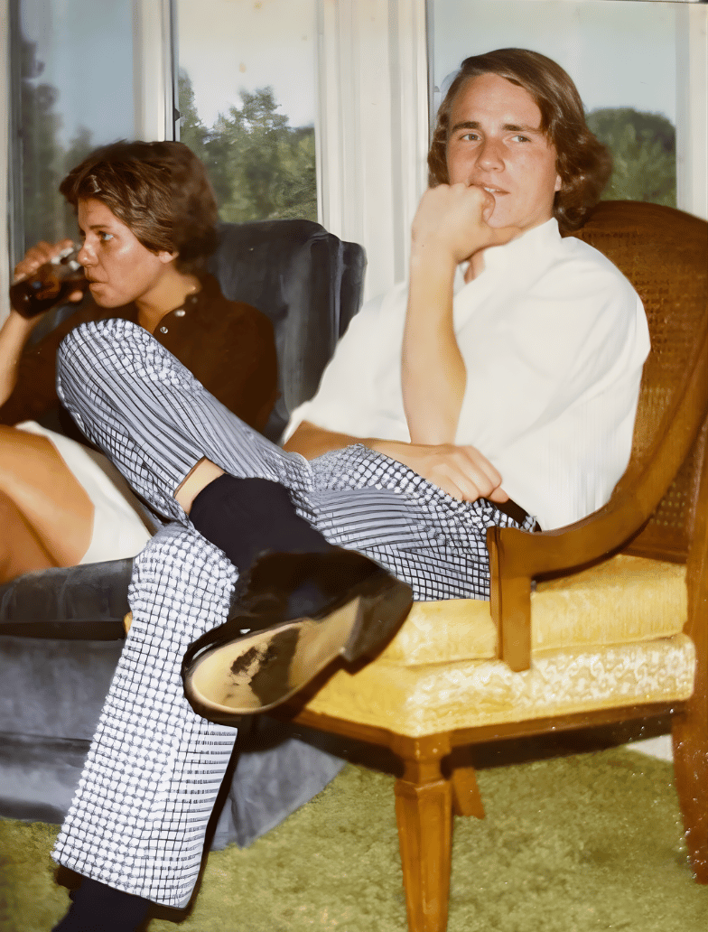 Rumors were that he had become a Cowboy. A Busboy. A Hustler. All of this was true and more. It certainly was a transformative time for Tom. He got rid of the buzz cut and became a “long hair” (as was de rigeur in 1971). He learned the craft of caddying and secured a residency at the Stanford Golf Club. At the Club, he met a lifeguard by the name of Anastasia “Stacy” Kesey. (Seen here downing yet another Jack and Coke before her shift at the pool.)